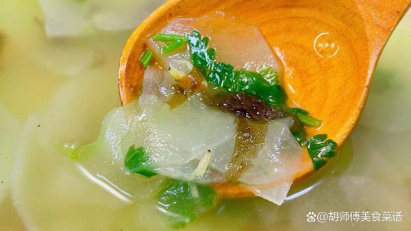 3、做老黃瓜蝦米紫菜湯,不要放胡椒粉或者生抽等調(diào)料,因?yàn)楹贩凼巧匣鸬恼{(diào)料,而生抽會導(dǎo)致做好的湯發(fā)黑。