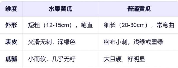 第一印象: 水果黃瓜像“精致小網(wǎng)紅”,普通黃瓜像“樸實打工人”。
