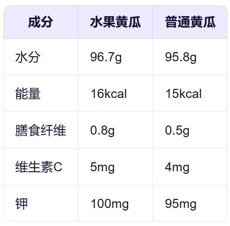 ? 水果黃瓜:水分略高,纖維稍多,口感上更“水靈”。