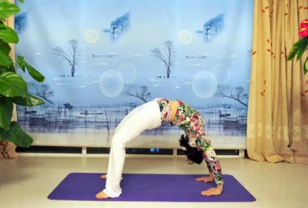 輪式,也是哈他瑜伽體式之一,輪式補(bǔ)養(yǎng)和增強(qiáng)背部肌肉群,放松肩關(guān)節(jié)和頸部肌肉,使脊柱保持健康和柔韌。其動(dòng)作要領(lǐng)是:第一步:仰臥,彎曲雙腿,腳跟盡量貼近臀部,雙膝分開(kāi)。第二步:雙手翻轉(zhuǎn)手腕放于頭部?jī)蓚?cè),指尖沖向肩膀,掌心撐地。第三步:吸氣,雙臂與背部用力,使身體抬離地板,頭頂觸地。第四步:向上繼續(xù)推舉髖部、腹部,手臂伸直,頭頸部放松,整個(gè)人成拱形。做到自己的極限即可。