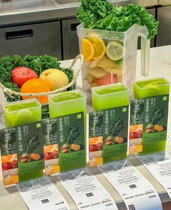 「瘦瘦小綠瓶」使用超級食材羽衣甘藍(lán),搭配橙子、蘋果、雪梨及金獎(jiǎng)茶茉莉初雪,口感輕盈鮮爽,一瓶補(bǔ)充膳食纖維、維生素C、胡蘿卜素、茶多酚等多種營養(yǎng)。而僅在華南區(qū)限定出售的「補(bǔ)水小粉瓶」將超級食材蓮霧與蘆薈、紅肉蘋果、金獎(jiǎng)茶茉莉初雪調(diào)和,鮮靈水潤,超絕補(bǔ)水效果令網(wǎng)友大贊其為“神仙水”,甚至有網(wǎng)友發(fā)帖稱喝了「補(bǔ)水小粉瓶」都不會(huì)起靜電了。