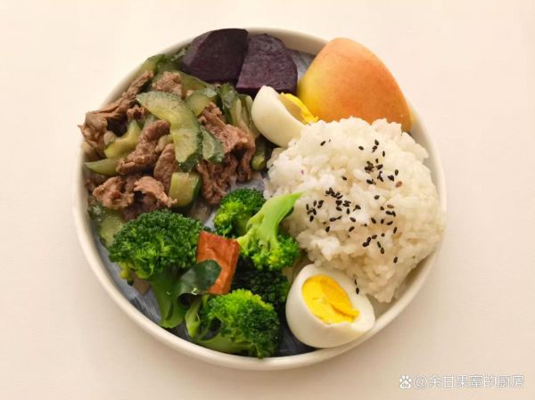 食材:牛肉、黃瓜、西蘭花、雞蛋、紫薯、蘋果、米飯