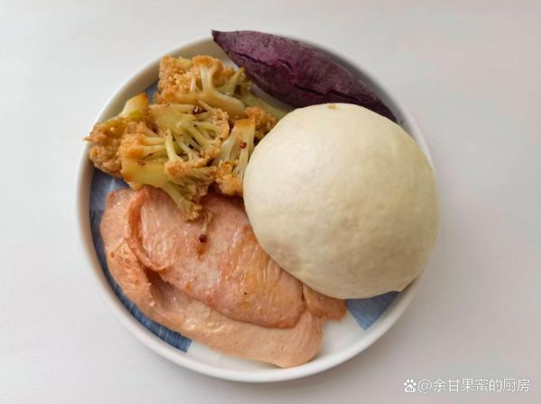 煎雞排很簡單,再炒一道花菜,主食有饅頭和紫薯,粗細搭配,有葷有素,簡單又有營養(yǎng)。