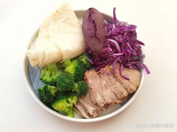 第六天:清水牛肉+涼拌紫甘藍+水煮西蘭花+紫薯+薄餅