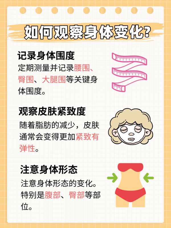 3.注意身體形態(tài):在觀察身體變化時(shí),除了關(guān)注圍度和皮膚緊致度外,還要注意身體形態(tài)的變化。特別是腹部、臀部等部位的線條是否更加流暢和優(yōu)美。這是因?yàn)橹镜亩逊e往往會(huì)破壞身體的線條美,而脂肪的減少則會(huì)使身體線條更加清晰和優(yōu)美。
