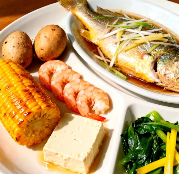 蛋白質來源:8-10只蝦仁、150克豆腐或200克蒸魚。