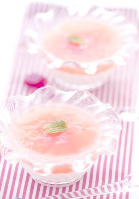 獨(dú)特地將牛奶與咖啡融合,制作出帶有香醇風(fēng)味的清爽果凍,層次感豐富。所需食材包括:牛奶200g、糖40g、瓊脂6g、朗姆酒適量、冷水50ml、開水250ml,以及適量的奶油、薄荷葉和純咖啡。