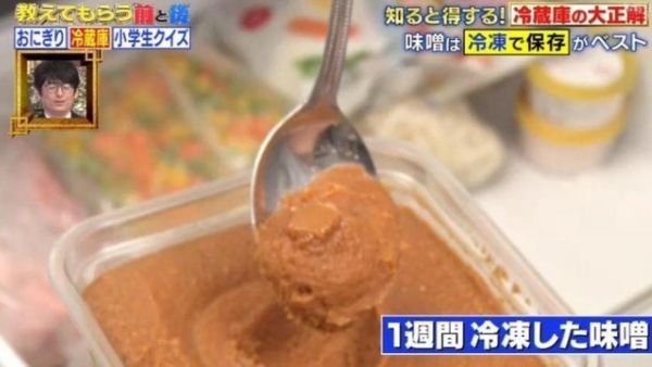 西川先生解釋要使味噌結(jié)冰,溫度需低于-30°C,一般家用的冰格溫度約-18°C,因此味噌未會(huì)結(jié)成冰,不用解凍,并可直接取出用于烹飪。