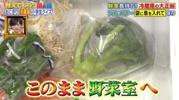 其次,將蔬菜放入雪柜前先多做一步,可以使它們保持新鮮,西川先生表示例如西蘭花和生菜等,將它們放入密實(shí)袋后,往袋中吹氣,讓塑料袋鼓起包覆蔬菜,這樣能有效延長(zhǎng)蔬菜的存放時(shí)間。