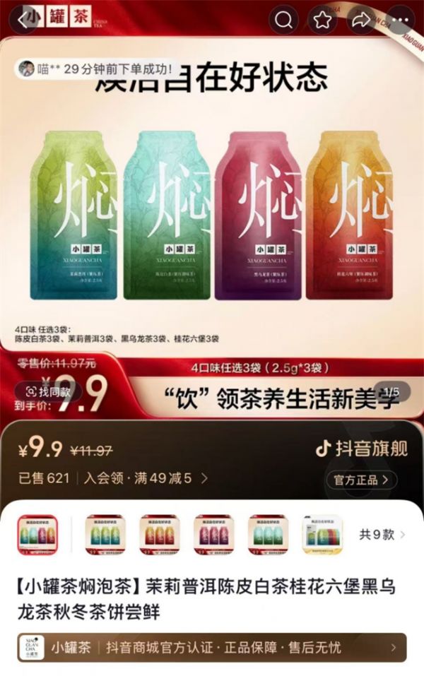 值得關(guān)注的是,這次新品發(fā)售同樣著眼于潛力巨大的大眾市場。小罐茶此前通過親民子品牌及高性價比產(chǎn)品,已經(jīng)積累了良好的市場基礎(chǔ)。而燜泡茶系列更以友好的39.9元每盒的常規(guī)裝定價面向大眾,并在推廣期間提供更易入手的9.9元3片的嘗鮮組合,有效降低了消費(fèi)者的初次嘗試成本。首發(fā)渠道選擇在用戶覆蓋面廣的抖音電商平臺,并結(jié)合符合消費(fèi)者觀看習(xí)慣的直播帶貨模式,極大地拓展了觸達(dá)人群。其“便捷養(yǎng)生”的鮮明屬性,恰好解決了傳統(tǒng)飲茶方式在便捷性上的不足,有望在更廣闊的市場中,憑借良好的體驗口碑加速普及,推動品牌融入更日常的消費(fèi)生活。