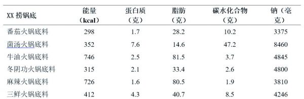 在火鍋的世界里,鍋底的選擇至關重要。不同的鍋底,其能量含量也大相徑庭。接下來,讓我們一起探尋市場上常見的火鍋底料,并了解它們的能量狀況。