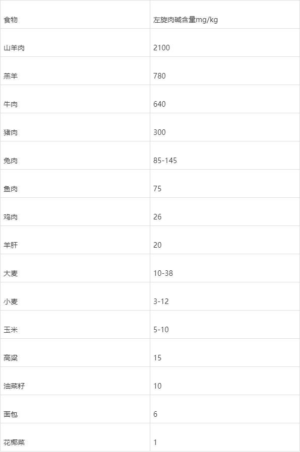 人類肝臟和腎臟能合成左旋肉堿,原料是蛋氨酸和賴氨酸,食物中也有左旋肉堿,主要集中在肉類和奶制品中,羊肉、小牛肉中含量比較高,通常情況下,肉越紅,左旋肉堿含量越高。