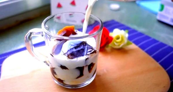 咖啡凍的質(zhì)地滑嫩,帶有微苦的口感,與新鮮的牛奶搭配食用,恰到好處。