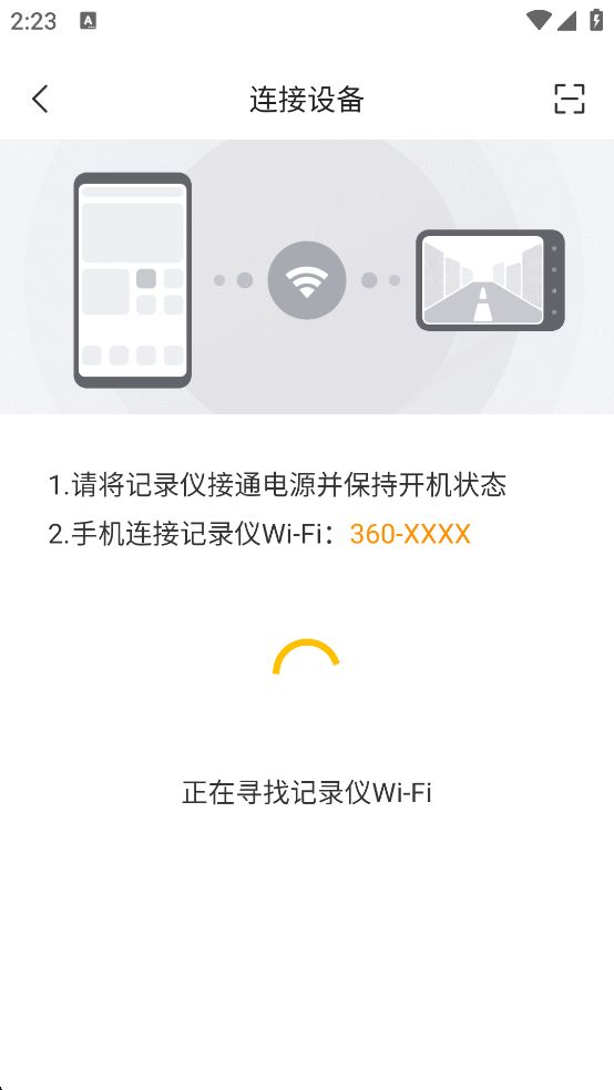 3、將記錄儀接通電源并保持開(kāi)機(jī)狀態(tài);手機(jī)連接記錄儀Wi-Fi:360-XXXX
