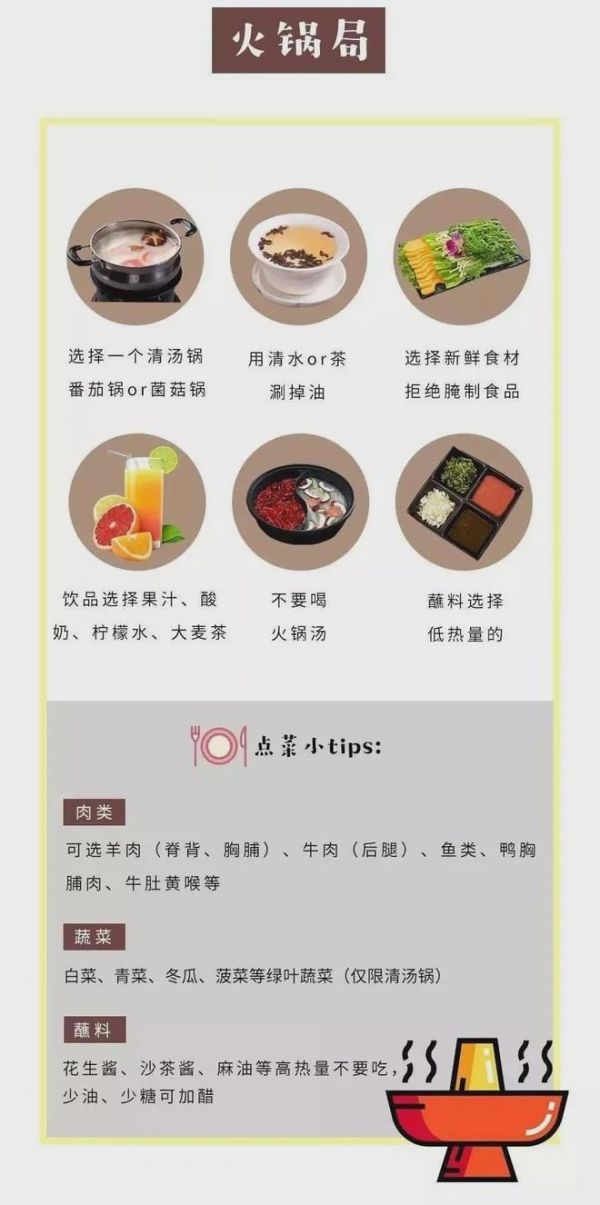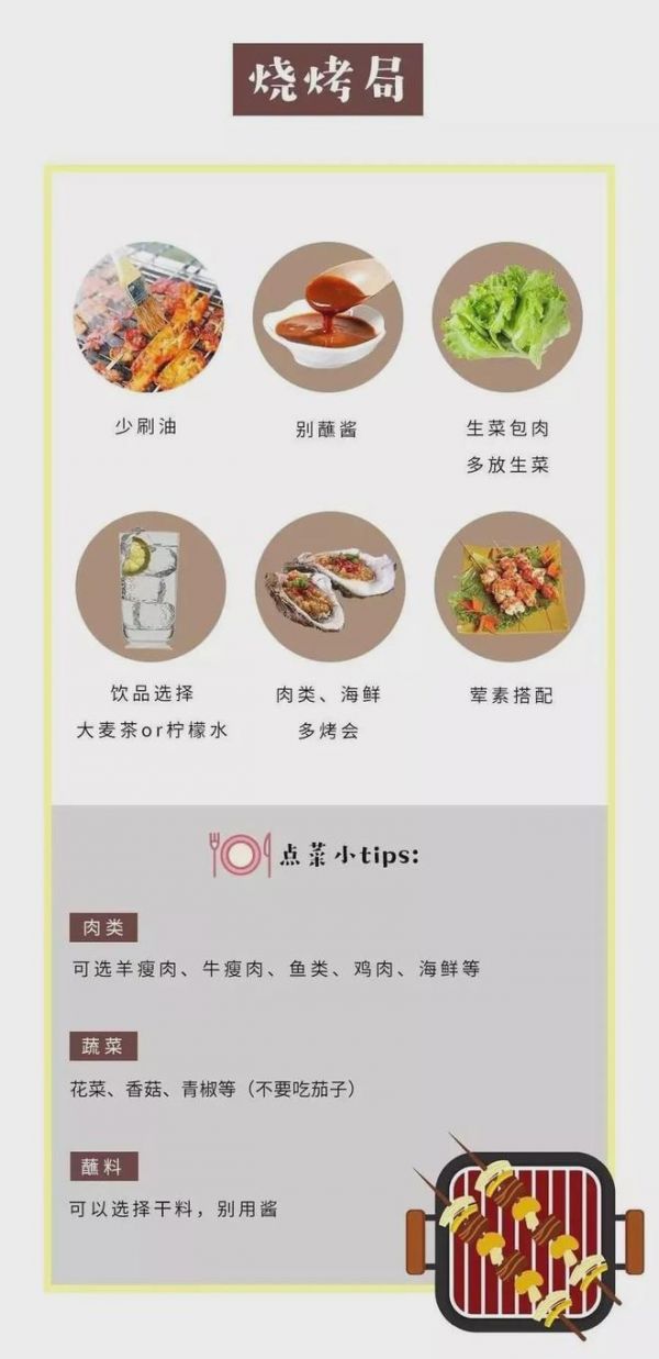 食用方法:最后注意不論是燒烤、火鍋還是各種自助,調(diào)味品、蘸料盡量少用,食物攝取要定量,攝入食物后充分咀嚼,七分飽為宜。