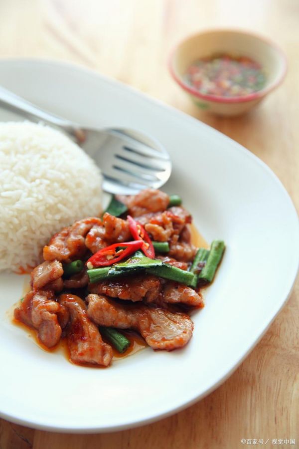 蓋澆飯:將炒好的豬肉和蔬菜蓋在煮熟的米飯上,可以根據(jù)喜好的比例調(diào)整豬肉和蔬菜的分量。