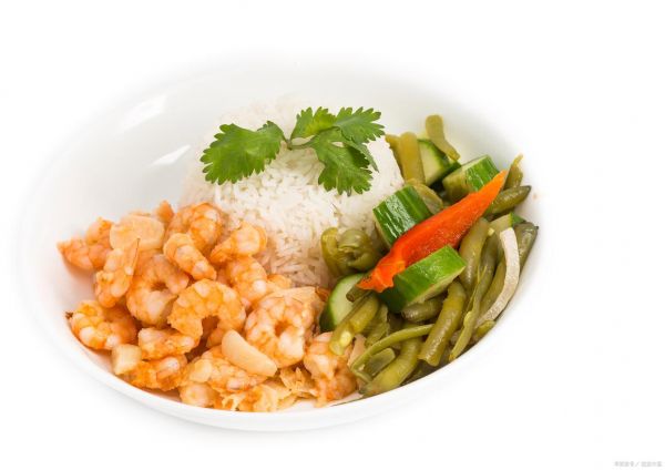 蓋澆飯:將炒好的蝦仁和蔬菜蓋在煮熟的米飯上,可以根據(jù)喜好的比例調(diào)整蝦仁和蔬菜的分量。