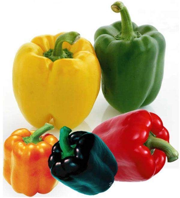 彩色大椒引自荷蘭,味甜質(zhì)脆,含糖量高,核小籽少果實大,果實顏色漂亮。開始是翠綠色,完全成熟以后是鮮紅色或米黃色,有光澤。肉質(zhì)厚嫩多汁,風(fēng)味奇特,增進食欲,營養(yǎng)價值高。具有較高的含糖量和維生素C。主要用于生食或切絲拌沙拉醬。