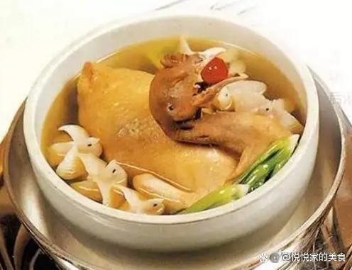 這菜又稱為是“五元神仙雞”,據(jù)傳在清代就已有記載,做法是將雞處理干凈,也可以在雞肚里塞入黃芪,放入容器里加入醬油,隔湯干燉,燉雞時用的黃芪還可以改用荔枝,桂圓,紅棗,蓮子,枸杞子一起搭配,燉出來香味更濃,營養(yǎng)極為滋補。