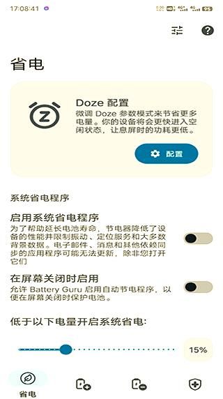 1、從本站下載并打開(kāi)Battery Guru電池大師,在應(yīng)用的首頁(yè),你可以輕松地一鍵配置省電設(shè)置。