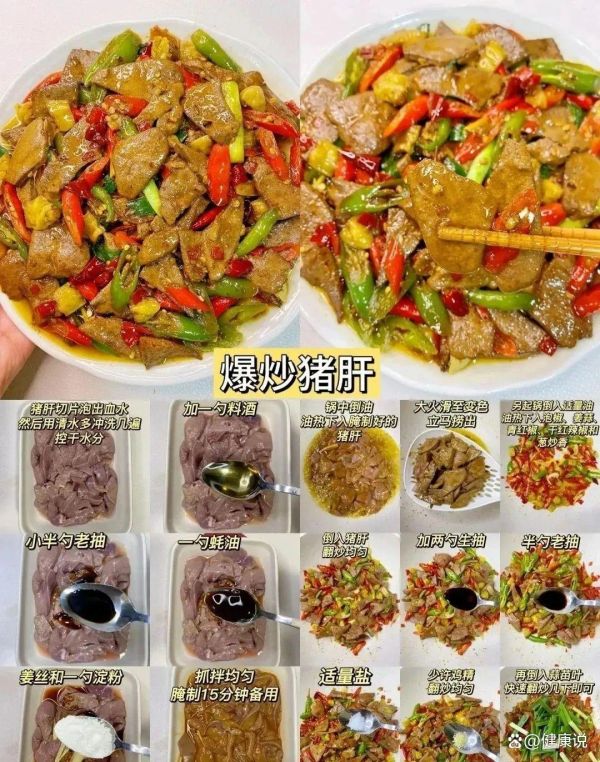 爆炒豬肝是一道營(yíng)養(yǎng)豐富的傳統(tǒng)美食。豬肝選用新鮮肝臟,切片后用料酒和少許生姜去腥,快速炒制以保持其嫩滑的口感。此菜富含鐵和多種微量元素,對(duì)補(bǔ)血有良好效果。