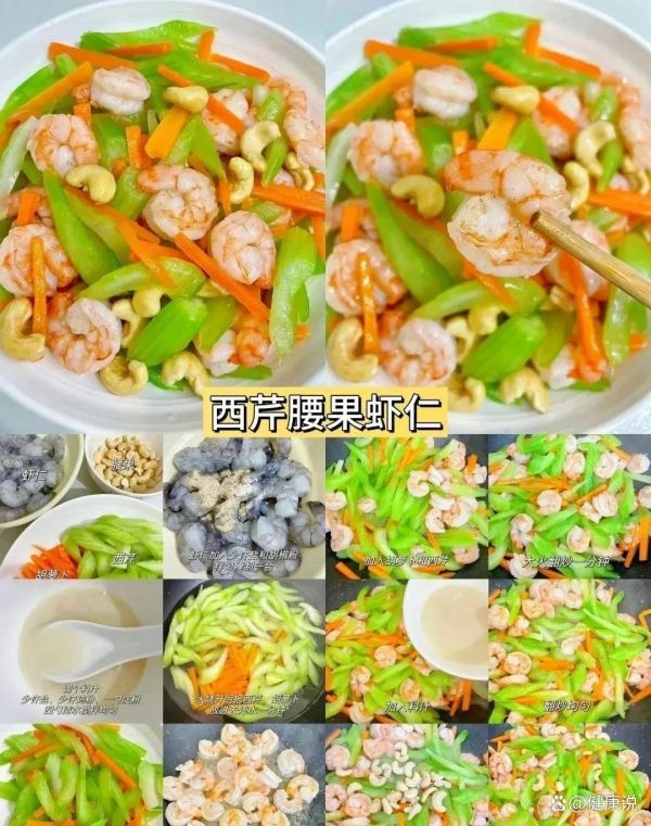 這道菜是一種美味的口感和營(yíng)養(yǎng)的完美結(jié)合。鮮嫩的蝦仁與脆爽的西芹以及香脆的腰果,炒至金黃,不但色澤誘人,而且富含健康的脂肪酸和蛋白質(zhì)。