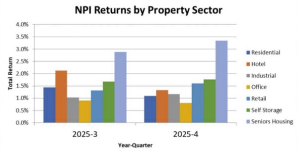 行業(yè)的火爆,從來都會快速傳導到資本市場。2025年第四季度,老年住房的總回報率達3.3%,比整體NPI總回報率1.1%高出220個基點,遠超住宅、酒店、寫字樓等其他物業(yè)類型,成為房地產(chǎn)領(lǐng)域的“增長黑馬”。