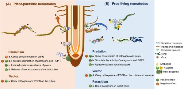 圖2 植物寄生線蟲(chóng)和自由生活線蟲(chóng)對(duì)植物健康的影響