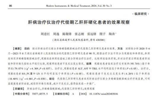 [1]周意紅.肝病治療儀治療代償期乙肝肝硬化患者的效果觀察 ,現(xiàn)代儀器與醫(yī)療,2024-06-25