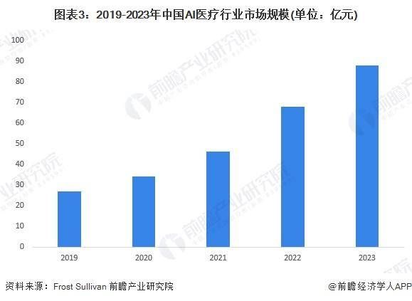 數(shù)據(jù)顯示,中國AI醫(yī)療市場規(guī)模從2019年的27億元快速增長至2023年的88億元,年復(fù)合增速達34%。