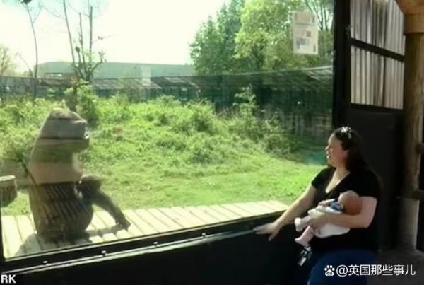 后者注意到了這邊的動(dòng)靜,也懷抱猩猩寶寶來到玻璃前,