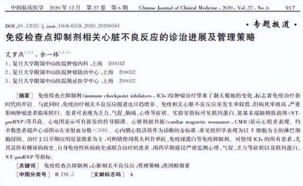 [1]艾羅燕.免疫檢查點(diǎn)抑制劑相關(guān)心臟不良反應(yīng)的診治進(jìn)展及管理策略, 中國臨床醫(yī)學(xué), 2020-12-24