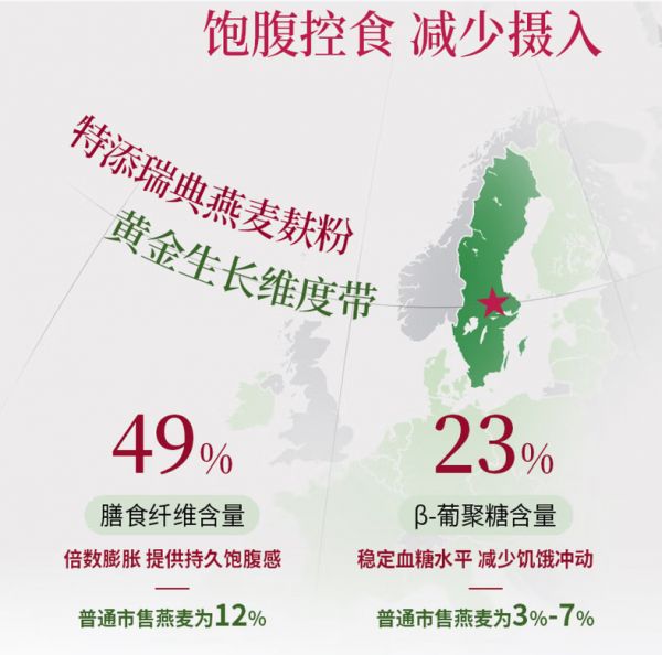 饑餓感是減脂依從性崩潰的首要原因,腰紀(jì)線采用瑞典進(jìn)口燕麥麩粉,其膳食纖維及β-葡聚糖含量較普通燕麥分別提升49%與23%,可在胃內(nèi)形成凝膠基質(zhì),物理性延緩胃排空至4-6小時;