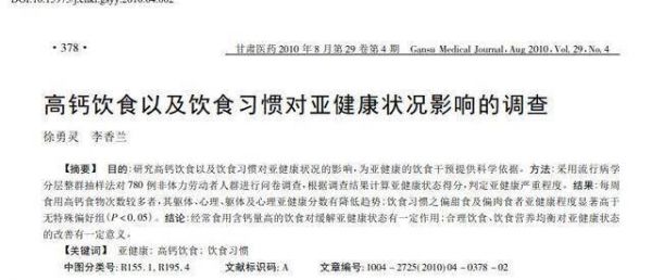 [1]徐勇靈,李香蘭.高鈣飲食以及飲食習(xí)慣對亞健康狀況影響的調(diào)查[J].甘肅醫(yī)藥,2010,