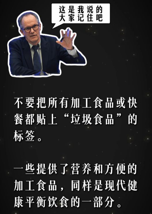 世界衛(wèi)生組織食品安全部的一位博士后來明確說過一句話,我印象特別深——"不要把所有加工食品或快餐都貼上垃圾食品的標(biāo)簽,一些提供了營養(yǎng)和方便的加工食品同樣是現(xiàn)代健康平衡飲食的一部分。"