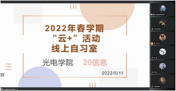 為保障班級學(xué)習(xí)氛圍不淡化,管理力度不放松,線上學(xué)習(xí)質(zhì)量不下降,居家生活不枯燥,光學(xué)與電子信息學(xué)院近期圍繞班級學(xué)風(fēng)建設(shè)與學(xué)生課外活動,組織實施班級“云+”計劃。