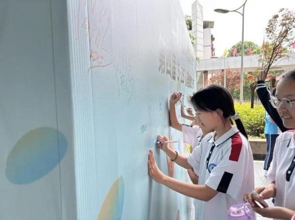 特制展板前,彩筆在同學(xué)們手中飛舞——有人用熒光粉勾勒手掌輪廓,有人用靛藍(lán)涂鴉出波浪紋路。當(dāng)無數(shù)個(gè)色彩斑斕的掌印在展板上匯聚,仿佛千萬顆心在此刻輕輕碰撞,既閃耀著獨(dú)一無二的個(gè)性光芒,又交織成溫暖的集體印記,成了校園里最吸睛的“心靈彩虹”。