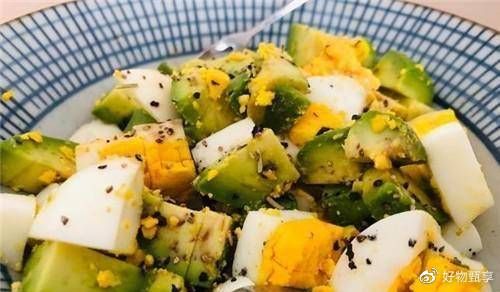 食材:牛油果1個(gè)、雞蛋2個(gè)、黑胡椒碎1/5勺、丘比芥末味沙拉汁2勺、迷迭香碎1/5勺、黑色海鹽粒(可以用任何鹽)0.1克。