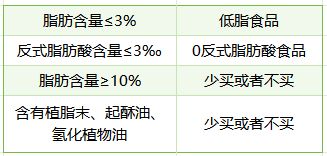 購買包裝食品時,一定要看營養(yǎng)成分表,重點(diǎn)關(guān)注“脂肪含量”和“反式脂肪酸”。