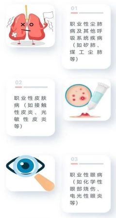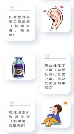 不同職業(yè)或工作環(huán)境中的有害因素不同,導致的職業(yè)病種類也有所差異。