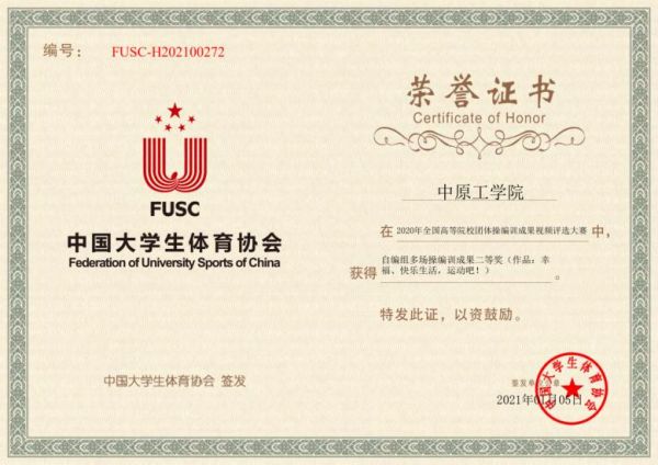 近日由中國大學(xué)生體育協(xié)會(huì)主辦,中國大學(xué)生體育協(xié)會(huì)健美操藝術(shù)體操分會(huì)執(zhí)行的“2020年中國大學(xué)生健康活力'云'系列大賽”落下帷幕,我校體育部認(rèn)真組織,積極備賽,體育部陳科、葉慧、劉倩、王寧、秦洪、馬楠、屈雯喆老師辛勤編排,精心制作。經(jīng)過組委會(huì)歷時(shí)一個(gè)多月的層層評選,我校最終取得團(tuán)體操自編多場二等獎(jiǎng)和自編單場三等獎(jiǎng)的優(yōu)異成績。