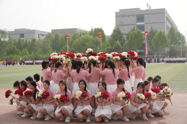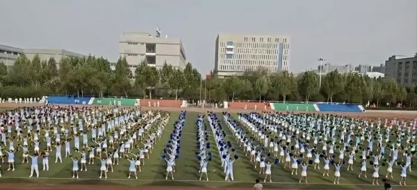 如果說方隊是“開場王炸”,那么團體操表演就是“終極大招”!200名學子身著天藍色的表演服,手持花球,化身“春日精靈”躍入場地。隨著音樂的驟然響起,他們整齊劃一的動作、創(chuàng)意十足的變換隊形,令人目不暇接。