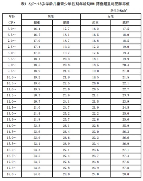 01BMI計算:BMI=體重(Kg)/身高(m)2,對照《6歲~18歲學齡兒童青少年性別年齡別BMI篩查超重與肥胖界值》,判斷體重是否在正常范圍。