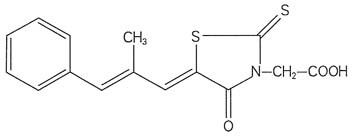 化學(xué)名稱為:5-[(1Z,2E)-2-甲基-3-苯基-2-丙烯亞基]-4-氧代-2-硫代-噻唑烷乙酸。