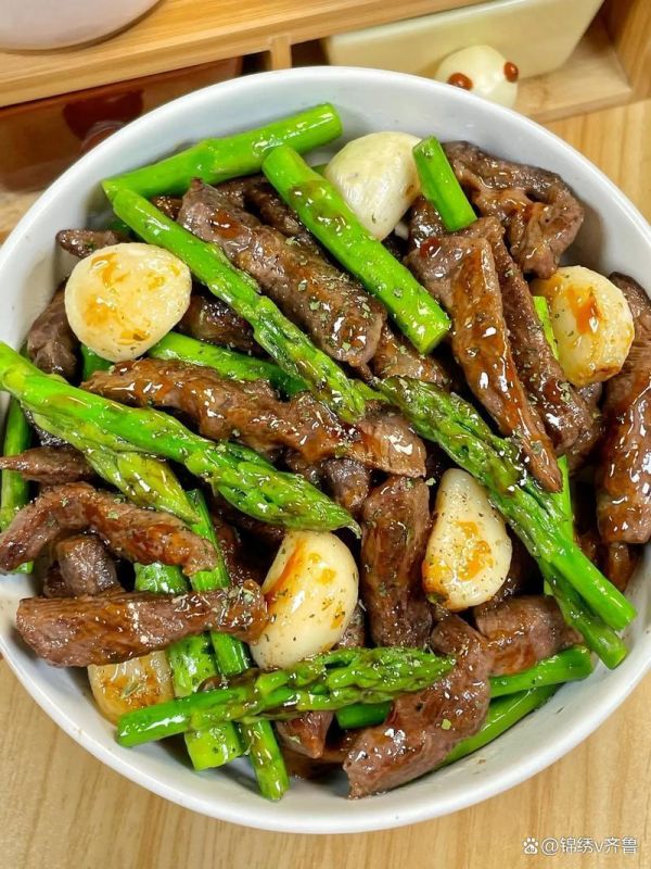 食材準(zhǔn)備:牛柳、蘆筍、蒜末、黑胡椒碎。