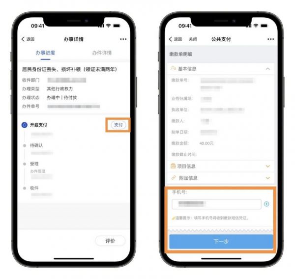 2.居民身份證丟失補領工本費為40元/證。完成在線支付后,點擊下一步。