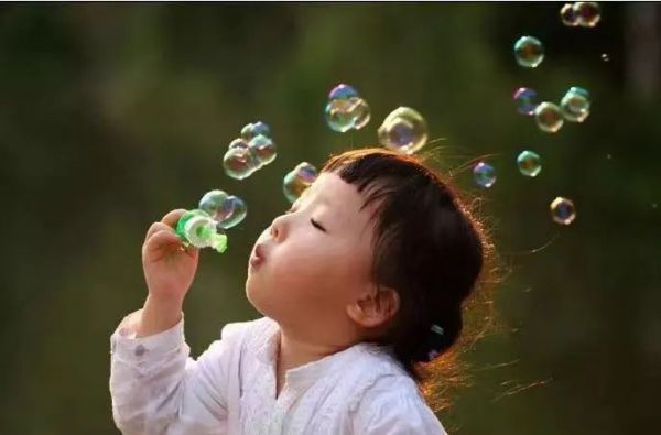 將四份洗手液和一份水兌在一起,攪拌均勻放在空瓶里,剪開(kāi)吸管的頭,剪成花朵樣,讓孩子吹泡泡,爸爸媽媽可以一起打泡泡,也可以反過(guò)來(lái),家長(zhǎng)吹,孩子打泡泡。