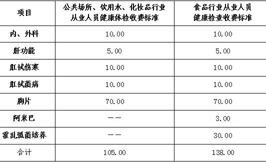 1.公共場所、化妝品、飲用水從業(yè)人員:105元/人