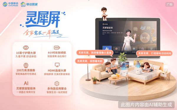 ??近日,中國移動正式推出其首款一體化智能交互帶屏終端——靈犀屏,并啟動試商用。該產(chǎn)品以“靈犀家庭智能體”為核心,融合影音娛樂、健康關(guān)懷、教育陪伴、遠程看護、可視通話等多元化場景服務(wù),通過“五屏合一,一屏陪伴”的設(shè)計理念,為家庭用戶帶來一站式、多場景、可移動的智慧生活新體驗。