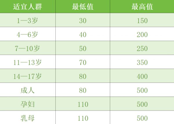 補充葉酸并不是劑量越高越好,過量補充可能引發(fā)健康風(fēng)險。根據(jù)《保健食品原料目錄 營養(yǎng)素補充劑(2023年版)》,不同人群每日葉酸補充劑量(以葉酸計,μg)需嚴(yán)格遵循以下標(biāo)準(zhǔn):